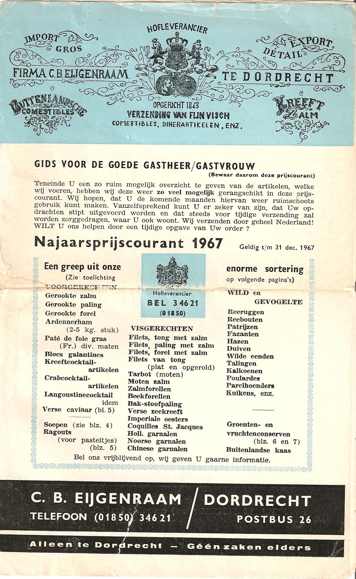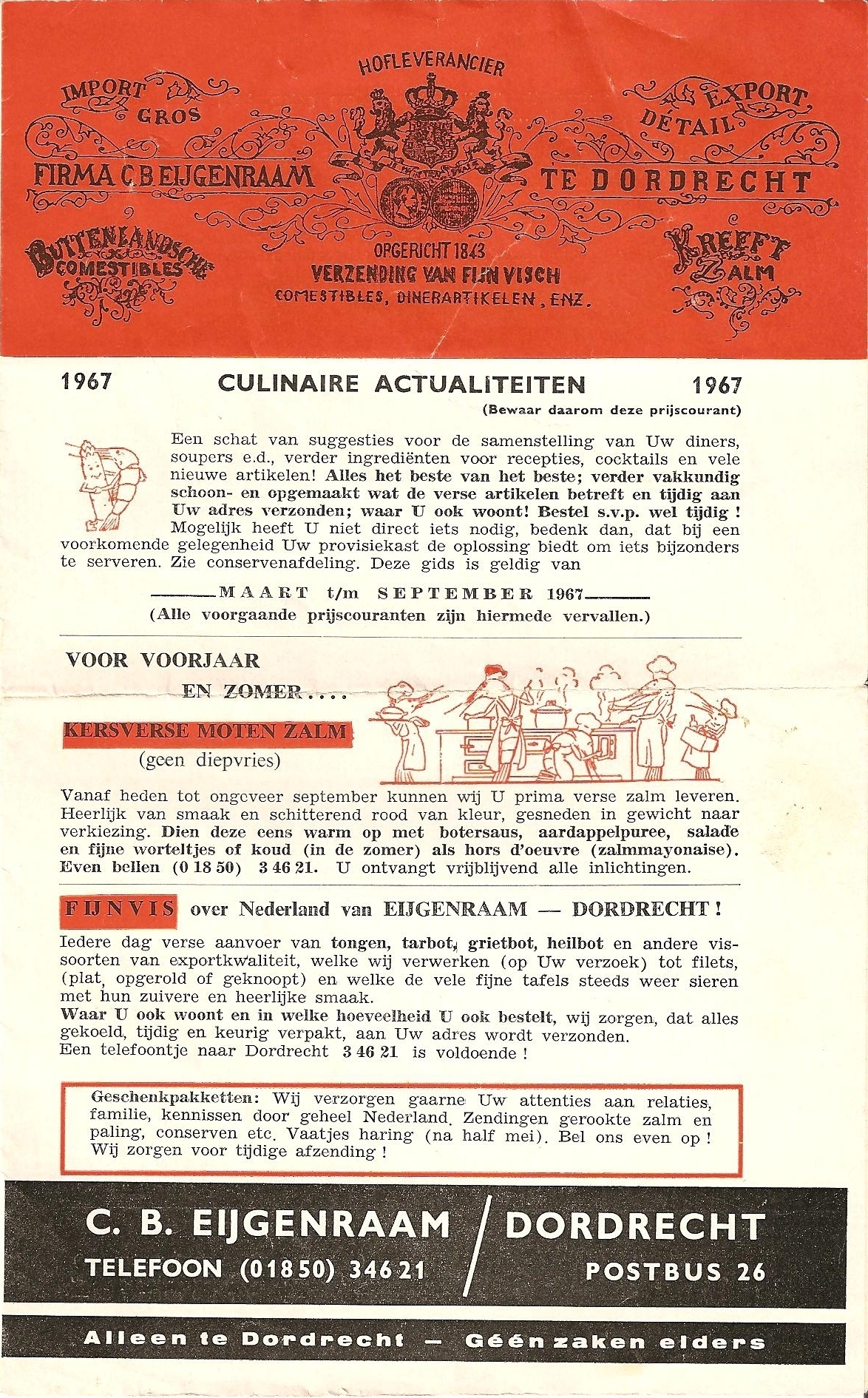 In 1875 wordt een vennootschap aangegaan tussen de gebroeders: Carel (CWH), Lodovicus (LThCL), Johannes (JPM) en Arnold (AN) Eijgenraam. De zaak in Dordrecht maakt bloeiende en minder bloeiende tijden door (oorlog). Orders komen vanuit het het hele land, maar ook daar buiten. Zelfs wordt verse zalm uit de Merwede geexporteerd naar Monaco en Hamburg.