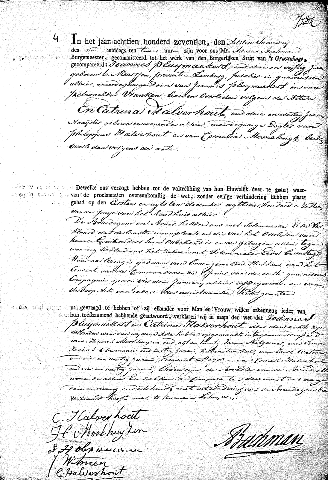 Afbeelding huwelijksakte Johannes Pluijmakers en Catharina Halverhout