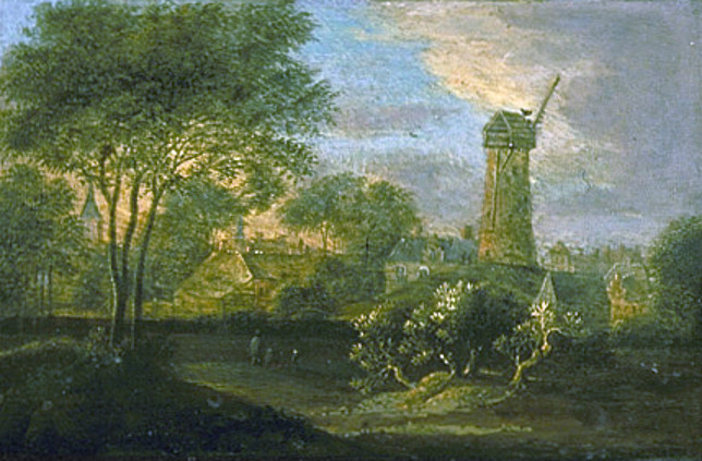 Fragment van een schilderij van Jacob van der Croos uit 1663. Malle Molen te Den Haag.
