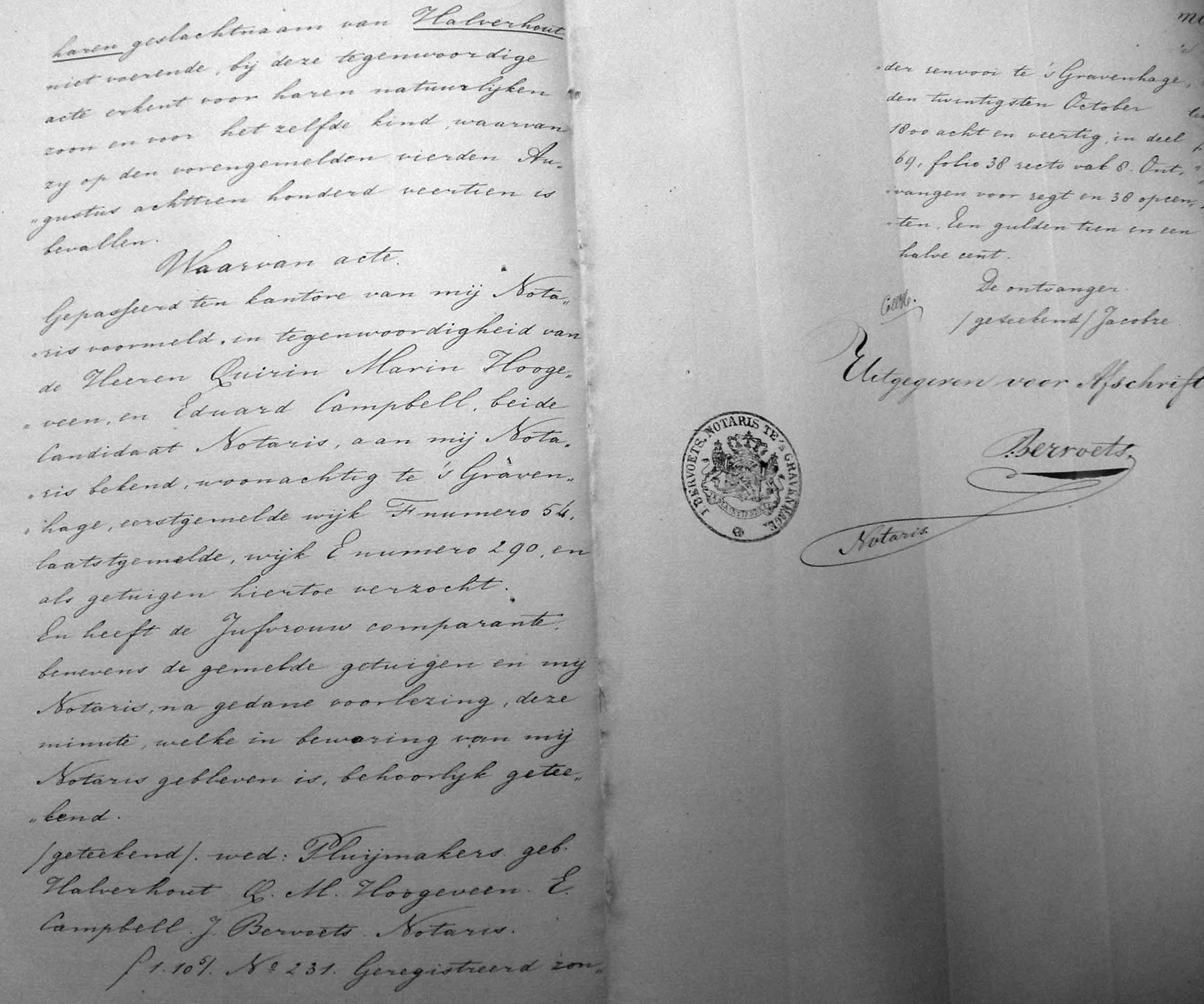 [stempel: J.BERVOETS. NOTARIS TE 'S GRAVENHAGE met wapen JE MAINTIENDRAI]