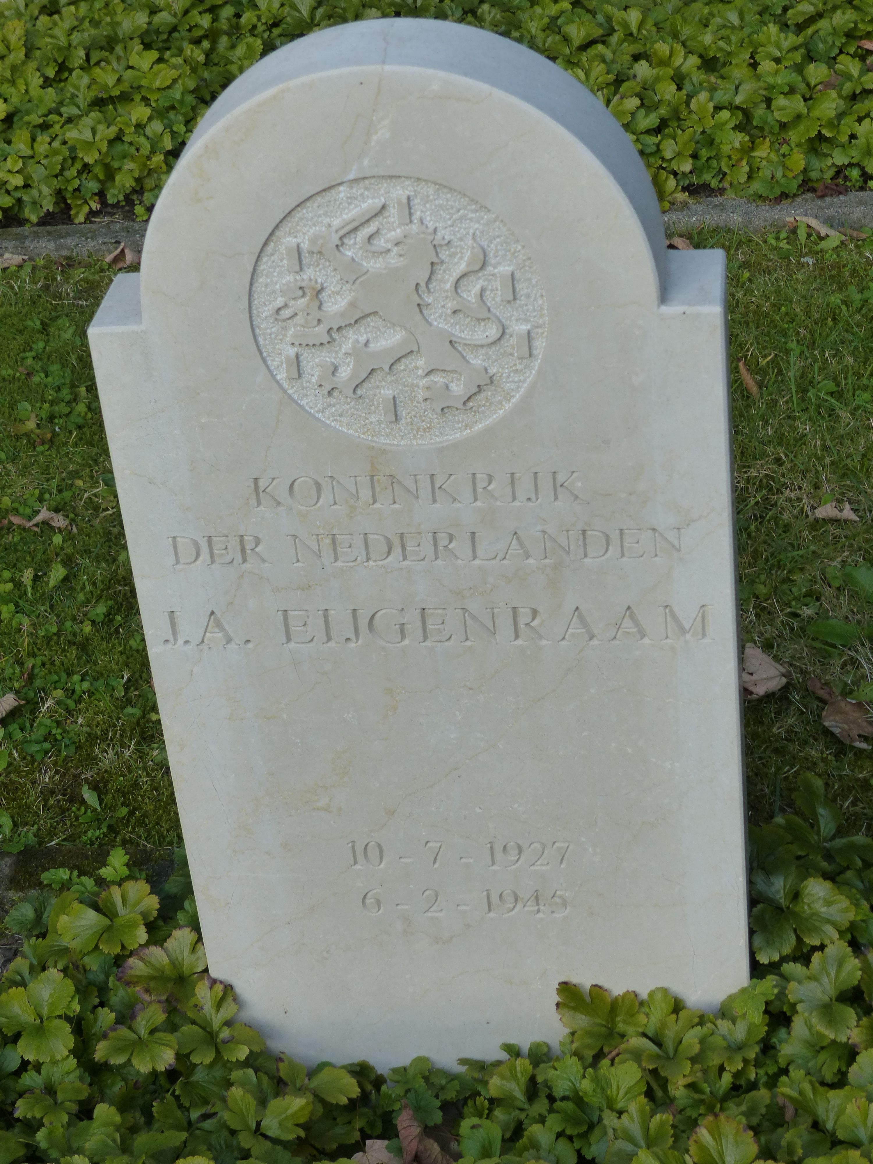 Johannes Abraham Eijgenraam , geboren 10-07-1927 te Delft, ovl 06-02-45 te Rees , Duitsland. Begraven in eerste instantie in massagraf, nu op het Stoffeln Friedhof. Zoon van Abraham Alexander Eijgenraam en Maria Adriana Overvoorde.