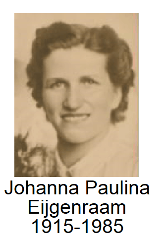 | 1. | Johanna Eijgenraam14, geb. te 's-Gravenhage in 1693, ged. te 's-Gravenhage op 05-04-1693 Johannes en Johanna Eijgenraam. |
